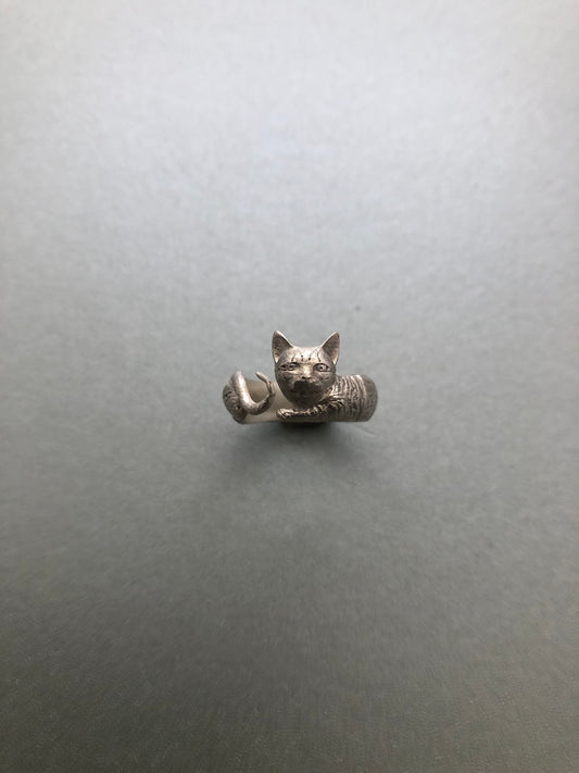 Ladies solid silver Cat ring