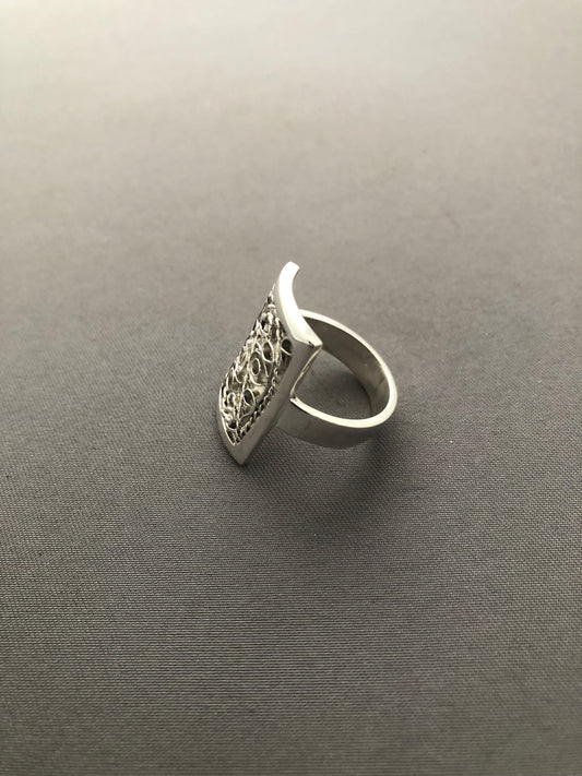 Ladies filigree square solid silver ring