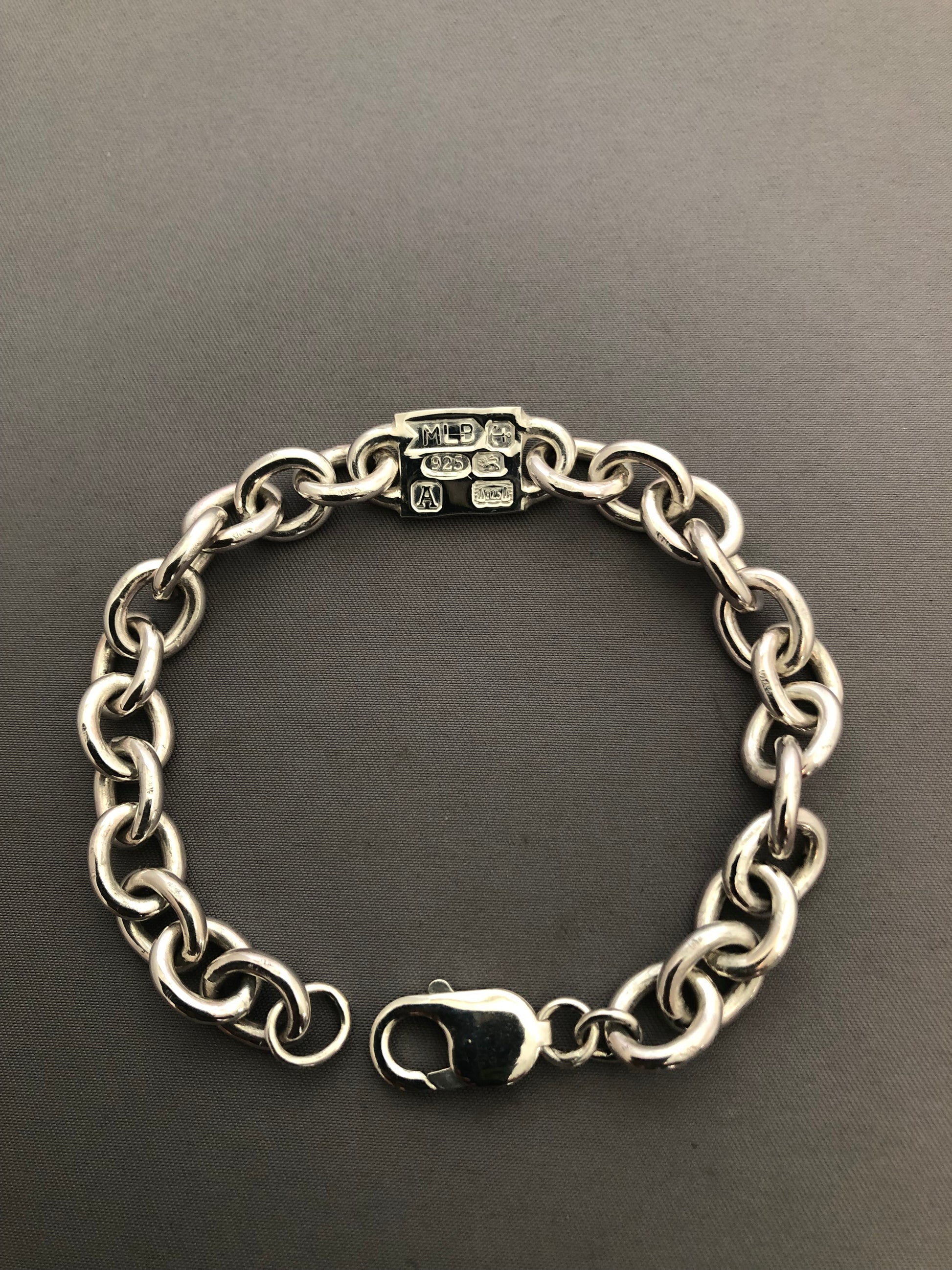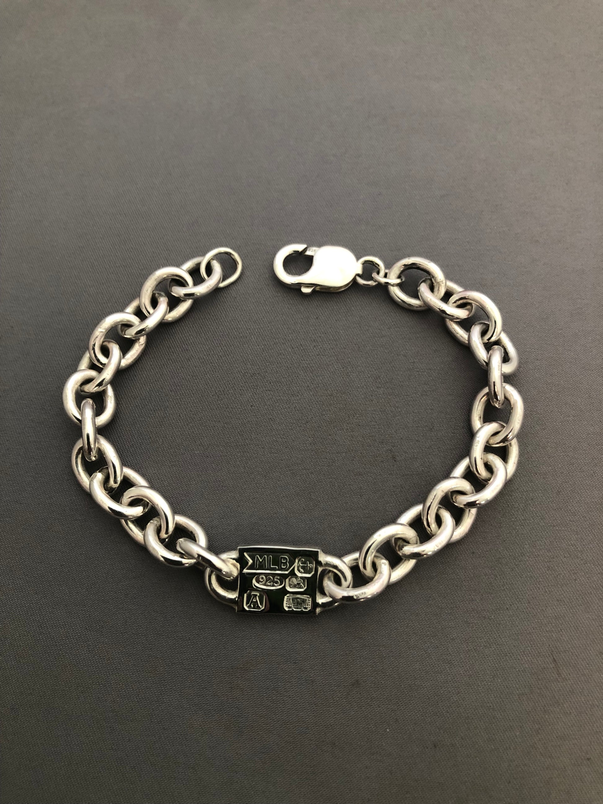 Heavy solid sterling silver mans bracelet with large hallmarks stamped on the bar I made this bracelet by hand it weighs 42 grams looks nice on.